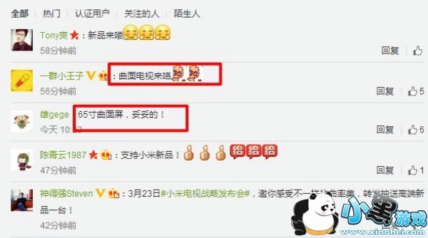 小米或将发布65英寸曲面屏电视?有关小米曲面电视的信息早有传言,不过今天该信息已经基本得到确认。继乐视65吋曲面电视发布之后,小米透露即将生产65吋大屏电视的风声,进入这则消息终于坐实,3月23日小米将发曲面电视。