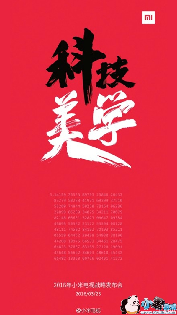 3月15日,小米电视微博发布信息:“π=?科技美学,邀你感受不一样的曲率美,3月23日#小米电视战略发布会#,倒计时8天!”。由此信息不难断定,小米3月23日将有小米曲面电视问世。