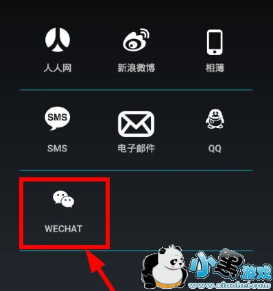 在分享界面中,你可以直接分享到人人网、新浪微博、相簿、SMS,电子邮件,QQ,微信等,想要分享到朋友圈的,点击WeChat;