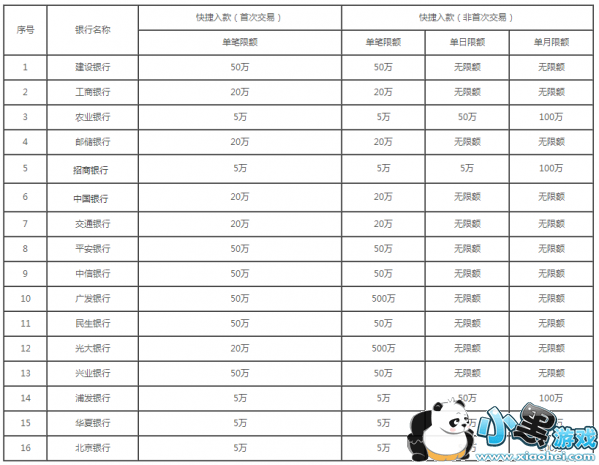 2、可以绑定哪些银行的银行卡?支付限额分别是多少?