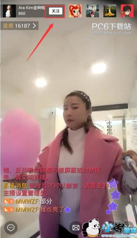 2、在该主播直播页面中点击关注即可快速关注该主播。