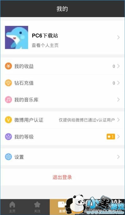 6、进入我的页面,用户可以进行查询我的收益、我的音乐库、个人主页等信息,同时还可以进行钻石充值及微博用户认证哟。