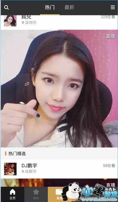 3、进入关注界面,可以了解你关注好友的直播信息,同时还可以快速进入热门直播进行观看;