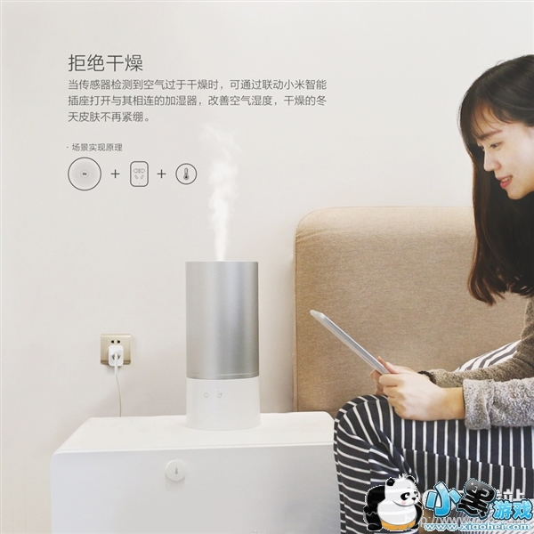 该传感器还能够智能联动家电,当传感器检测到空气过于干燥时,可通过联动小米智能插座打开与其相连的加湿器,改善空气湿度。再比如检测到室内温度不正常时,能够自动打开空调,调节室温。