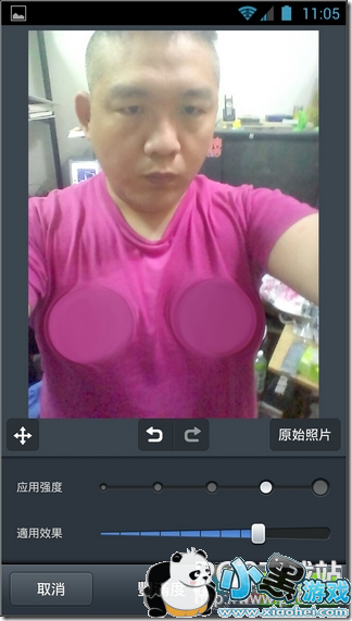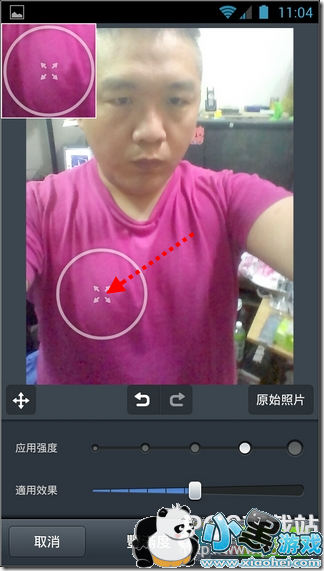 「丰满度」则可能是部分女性会想要的功能,以前都要透过PS大神,现在自己来就可以,只要对着想要增大的范围点一下就会变大一些,点越多下就越大: