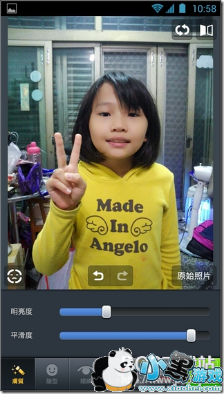 执行后系统会自动帮您做调整亮度与皮肤的光滑度,如果觉得「磨皮」磨的不够的话还可以自行调整(太夸张的话会没有毛细孔XD):