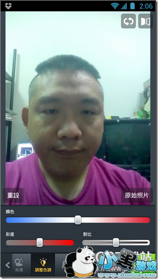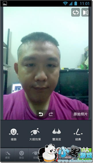「美容」功能则是最近加入的,很多朋友都不知道它的妙用无穷,我个人使用觉得不会输给「美图秀秀」或「美人相机」,可选择直接拍照或是由相簿中挑选照片修改: