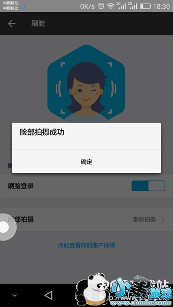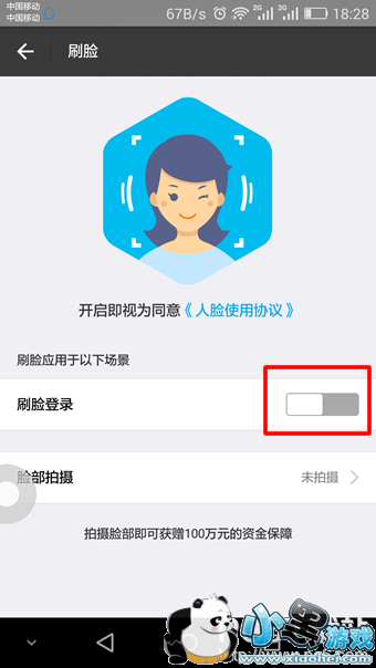 3、 “刷脸登录”按钮开启