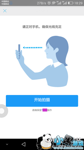 4、 接下来就可以开始拍摄了==》正对手机,要确保光线充足==》脸部拍摄==》