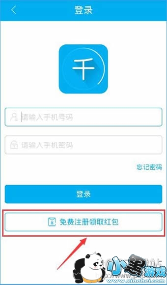 2、在登录页面中点击免费注册领取红包;