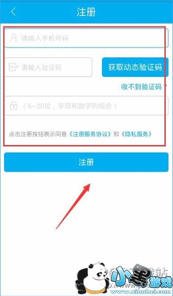 3、在注册页面,输入手机号、手机短信验证码及密码,然后点击注册即可注册成功。
