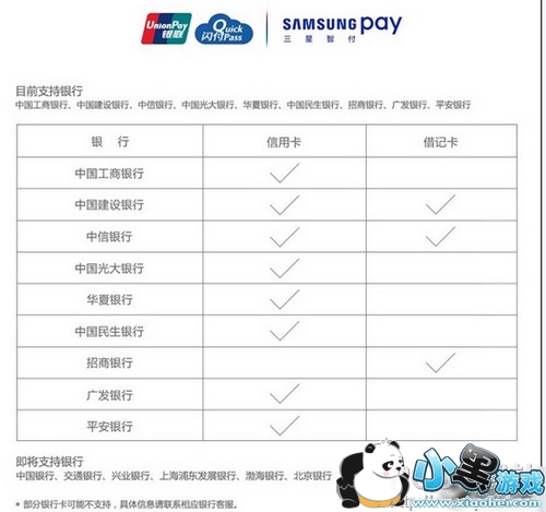 即将支持的银行包括:中国银行、交通银行、兴业银行、上海浦东发展银行、渤海银行、北京银行。