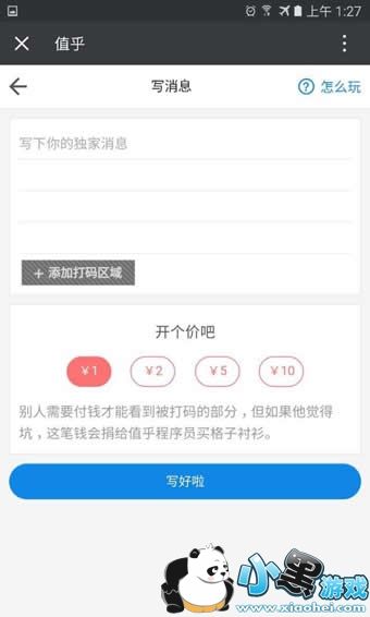 然后呢,每个人也能发送自己的打码消息,并设置一个其他人必须付费才能查看的价格。