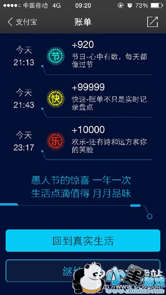 4、点击回到真实生活,就能够看到自己的真实的账单详情了