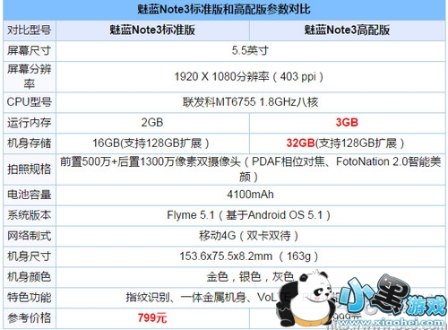 魅蓝Note3标准版和高配版区别?