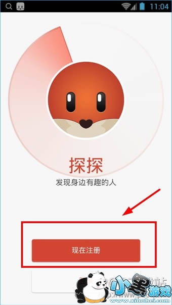 1、打开探探app之后,点击首页的“现在注册”按钮;