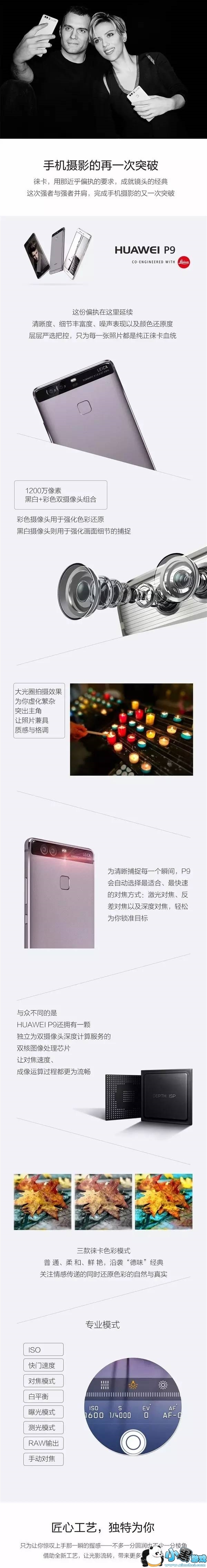最后再来看看华为官方公布的P9拍照方面的优势: