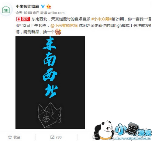 今日,@小米智能家庭官方微博日前宣布将于4月12日上午10点众筹一款新的产品,宣传图片有“东南西北”四个字,莫非要上线一个暴露年龄的玩具?