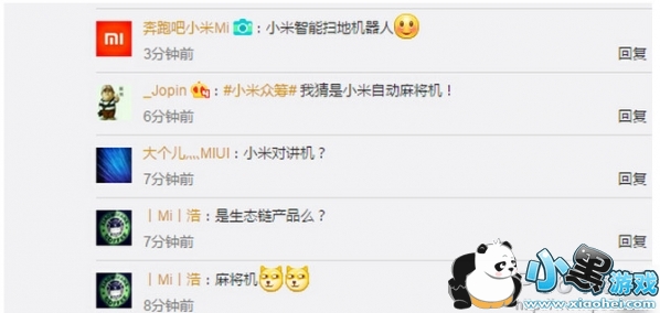 小米智能家庭官方微博提示有“东南西北,天真烂漫时的自娱自乐”、 “你一言我一语”等信息。至于到底是什么产品还是很难猜,而网友们早已经脑洞大开了,有网友猜测该产品会是智能扫地机器人、小米自动麻将机,也有人猜测是小摄像机!