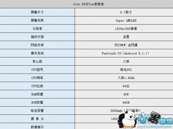 硬件配置方面,vivo X6S Plus配备了5.7英寸1080P分辨率AMOLED屏幕。配有8核1.8GHz的64位高通骁龙652处理器+4GB超大内存,前置500万+后置1600万像素摄像头,双卡全网通以及3000mAh大电池,该机运行基于安卓5.5.1系统深度打造的Funtouch OS系统