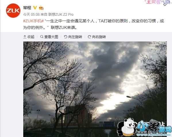更值得注意的是,微博尾巴显示,常程已经用上了联想ZUK Z2 Pro手机,这无疑是ZUK未来将发布的新机。至于配图是否来自新机摄像头,就比较引人遐想了。