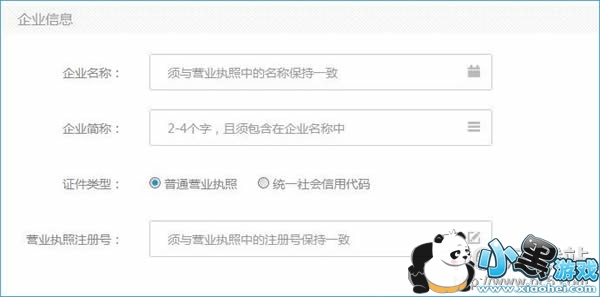 ③ 企业信息:填写企业名称、简称、证件类型、营业执照注册号或统一社会信用代码、企业住所、法定代表人、归属地、所属行业等即可进行下一步操作。其中,企业名称可以是汉字和“()”,企业简称只能是汉字,且均在企业名称里。