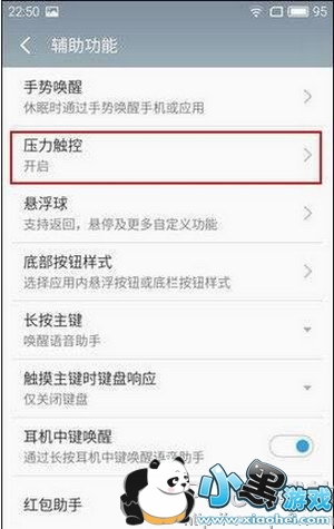 二、点击进入到“辅助功能”设置页面中,就可以找到压力触控功能了,此外下面还可以调节3D Press触控的灵敏度,如图所示。
