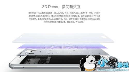 PRO 6采用全新的设计,超窄边框配合重新成形的2.5D玻璃,屏幕与机身过渡追求自然。减小倒角切边;3D立体喷砂;天线开口面积比iPhone6s小了48%;147.7x70.8x7.25mm,160g。