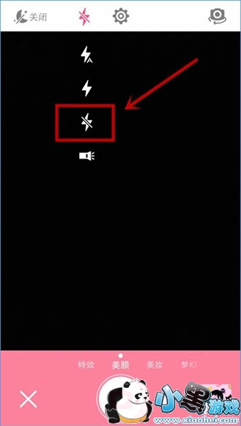 2、在“自拍”页面中,只有打开后置摄像头拍照时才能调节闪光灯哦,点击上方第二个“闪光灯”按钮,选择下拉的第三个“关闭闪光灯”就能够一键关闭闪光灯啦!