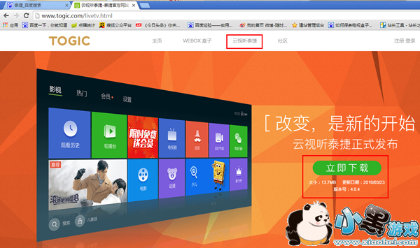 第四步:安装完后,返回到盒子系统桌面,找到“云视听.泰捷”这个图标打开后就可以看各种节目啦。