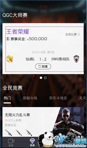 1、打开企鹅电竞app,进入赛事页面,点击你想回看的那个赛事,如小编选择的王者荣耀;