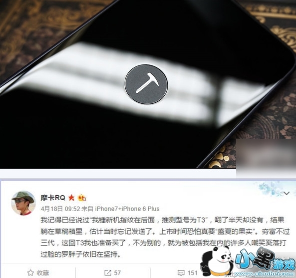 在现如今这个旗舰机标配指纹识别的时候,Smartisan T2在面对同价位产品时候确实非常吃亏。好消息是,锤子的下一代旗舰机将配备指纹识别,它的型号可能是Smartisan T3。业内人士@摩卡RQ昨天在微博上透露,锤子新机的指纹识别会放在背部,推测型号应该是Smartisan T3,上市时间则是“盛夏”。
