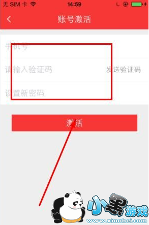 步骤三、在账户激活界面,输入手机号以及短信验证码,
