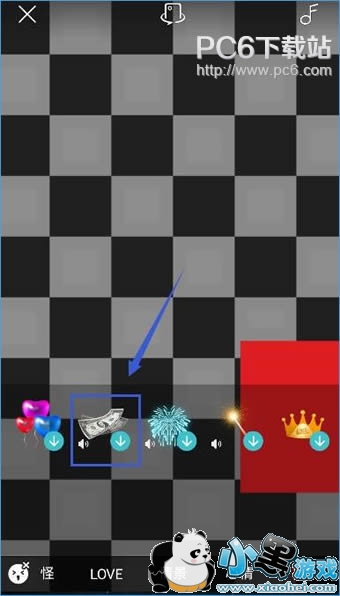 3、在特效页面中找到喜庆下面的钱钱进行下载,下载完成后双击即可加入特效,加入该特效后张开嘴巴即可快速吐红包。
