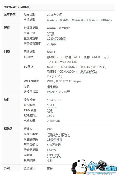 根据此前工信部的曝光,魅蓝3将采用5英寸720P显示屏,搭载主频1.5GHz八核处理器,2GB RAM+16GB ROM,500万前置+1300万后置摄像头组合,配2800mAh电池,运行YunOS 3.1.6系统,支持全网通。