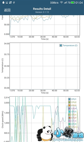 这个GPU测试中,八颗CPU并没有全部开动,一般也就是一两个核心在活动,而温度基本在33-34℃。