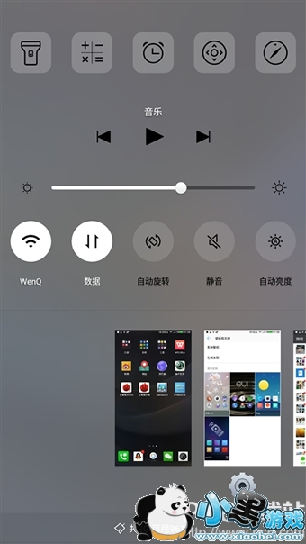 控制中心就比较特殊了,不是和下拉通知左右并列,而是需要按下多任务键呼出,不过也让传统单调的多任务界面丰富了起来,还可以调节快捷应用、快捷开关、音乐控制、亮度,锁屏的时候也可以呼出。