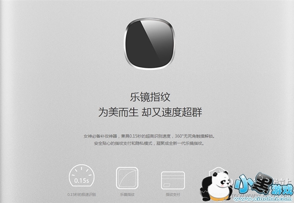 指纹识别是当今必不可少的,乐2在背部设计了“乐镜指纹”(可以当小镜子),可添加5组指纹识别,0.15秒识别,99.3%正确识别率,360度无死角触摸解锁,支持指纹支付、隐私模式。
