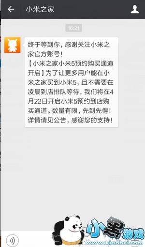 1、关注小米之家官方微信,进入预约到店购买通道。