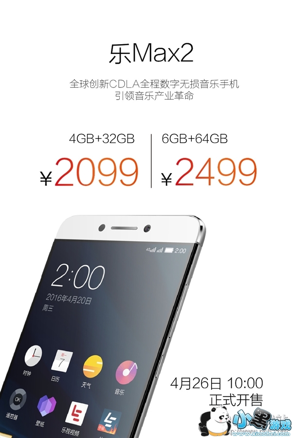 4月26日上午10点正式开卖,价格4GB+32GB 2099元、6GB+64GB 2499元。