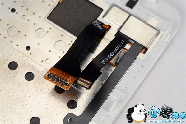 屏分离后可以看到屏幕和机身之间有2条排线相连。
