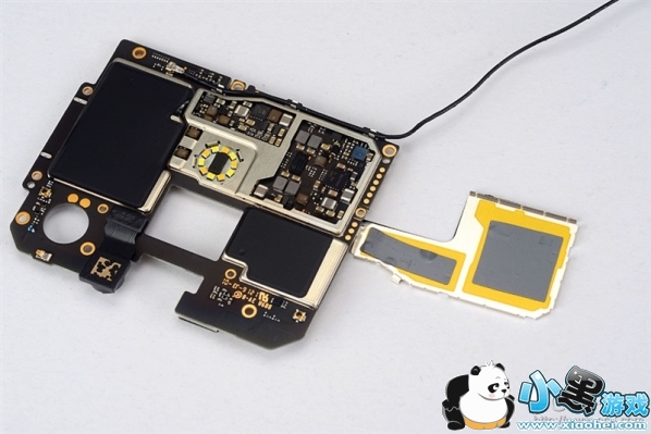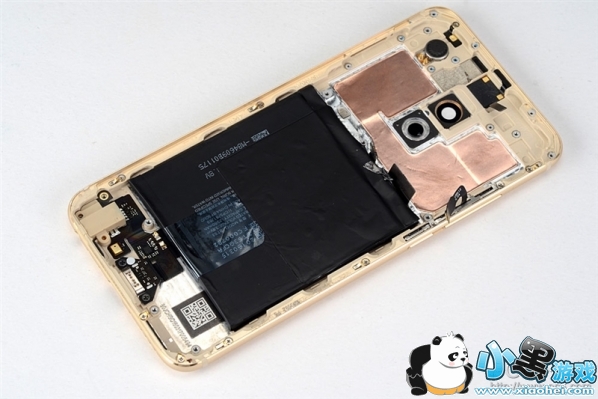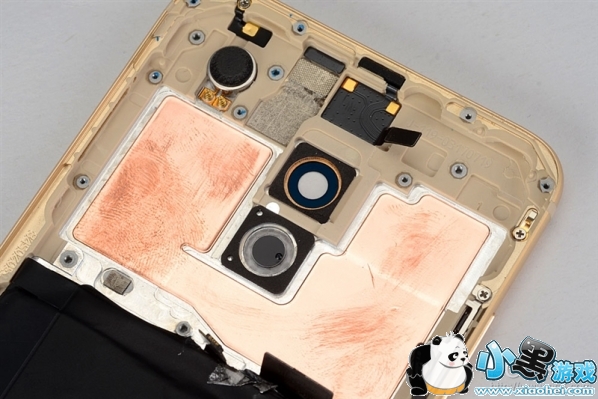 PCB对应的位置后盖上也贴了铜箔,这个能帮助手机散热。