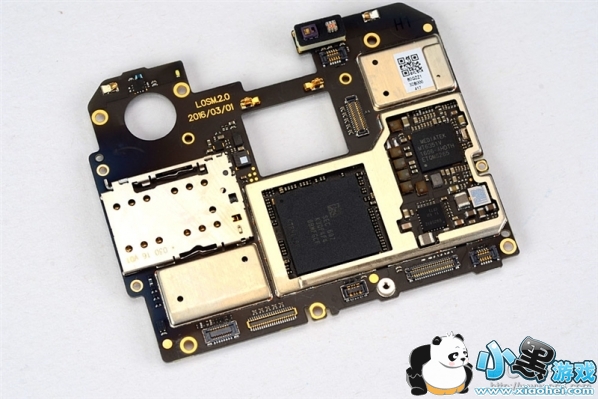 魅族PRO 6由于机身厚度限制,PCB设计也是比较紧凑,可以看到PCB的正面全部覆盖有屏蔽罩。另外可以留意到PCB上有一个日期,标注是2016年3月1日,这个应该是这块PCB的制造日期。