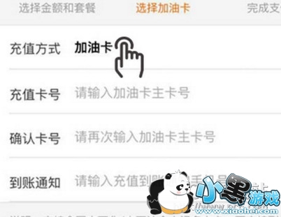 3、选择“加油卡”,输入自己的充值卡号并确认卡号,选择“到账通知”方式后点击“确定”;就可以了