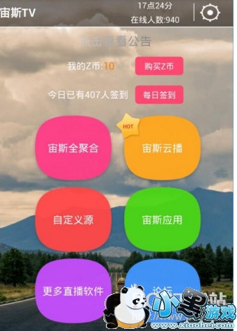 2、在全聚合页面,用户有可以进行购买Z币和签到哟,同时还可以观看宙斯全聚全和宙斯云播,同时还可以自定义源: