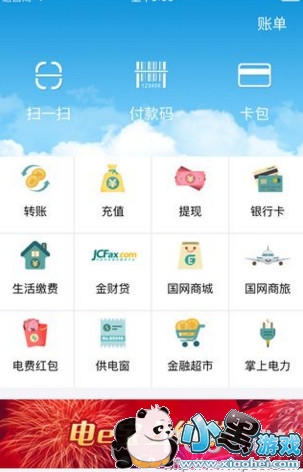 功能:充值交费理财等