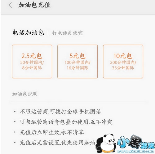 MIUI用户可在电话设置中找到“电话加油包”选项,它的售价为3.5元/50分钟,可拨打全国电话。此外,小米表示还有更给力的套餐,可拨打全球电话。