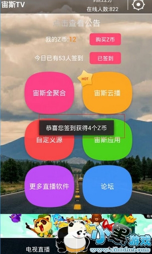1、宙斯TV聚合页面点击每日签到,用户即可快速获得4个Z币;