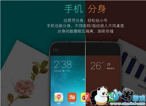 小米表示,miui8应用可分身,轻松挂小号,手机也能分身,不同密码/指纹进入不同桌面,分身间数据相互隔离,加密存储。理论上,一台运行MIUI 8的手机,可以有运行4个QQ、4个微信。