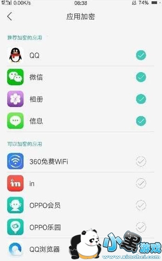 二、默认是没有开启【应用加密】,点击进入就可以选择自己想要加密的应用程序,如果相册加密的话,就选择相册机密,如图所示: